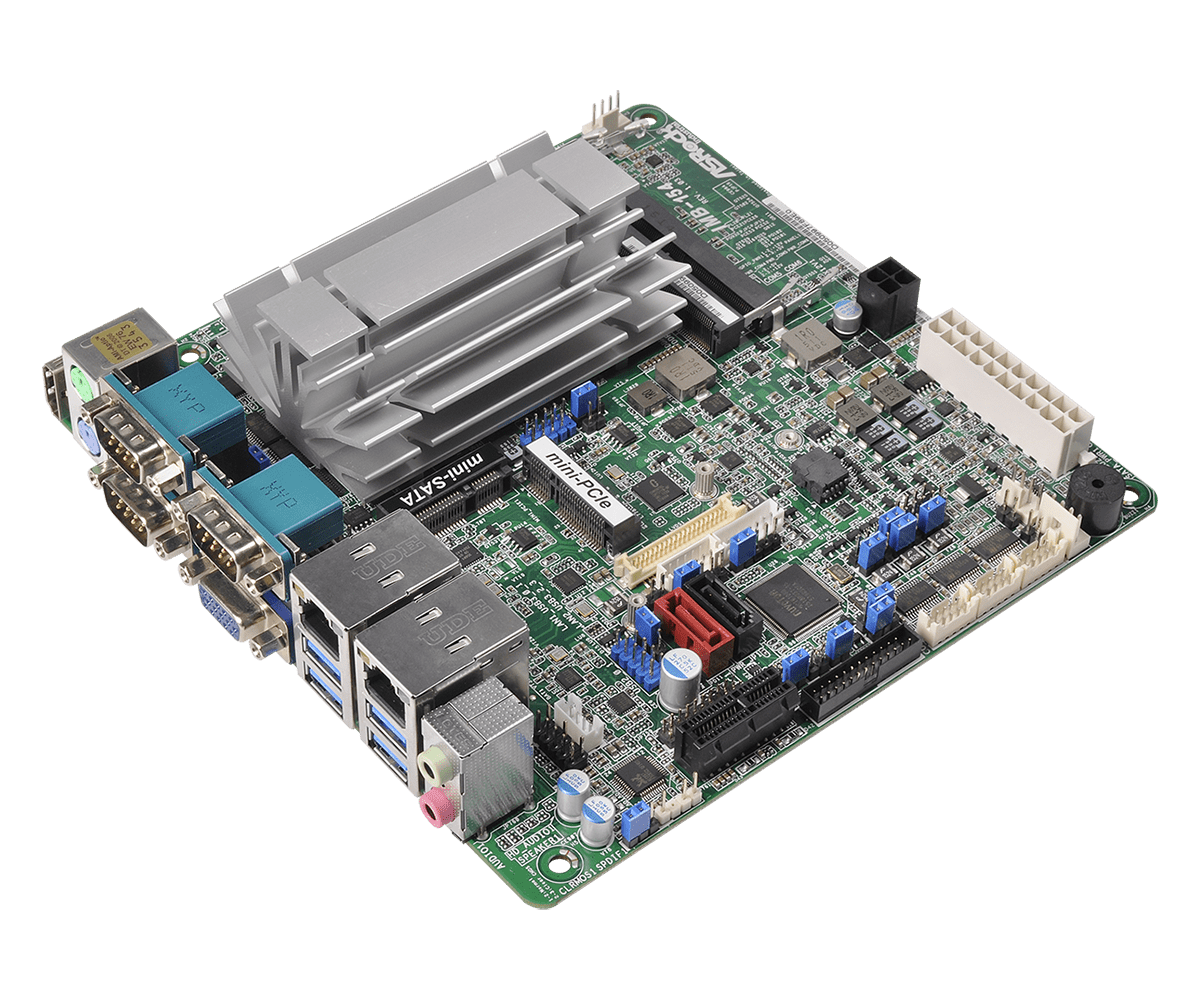 Any number of mini-ITX motherboards from companies like Mitac, ASRock, Asus, and Supermicro can be used. But since the integrated power supply can only supply 5A of continuous current, the current requirements of the motherboard, CPU, and other components, must be considered.
